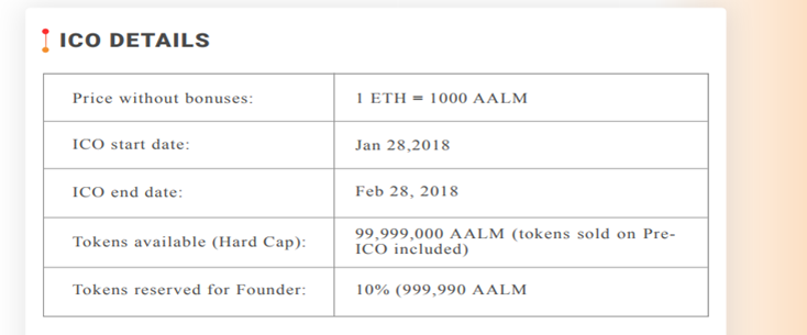 The team is conducting the ICO to complete their project. The AALM ICO starts from 28th January 2018 and continues until 28th February 2018. One ETH is equal to the 1000 AALM. The funds will be utilised in the development, operations and marketing of the project. . This will become the biggest meeting point for the People looking for Great ICOs and jobs.